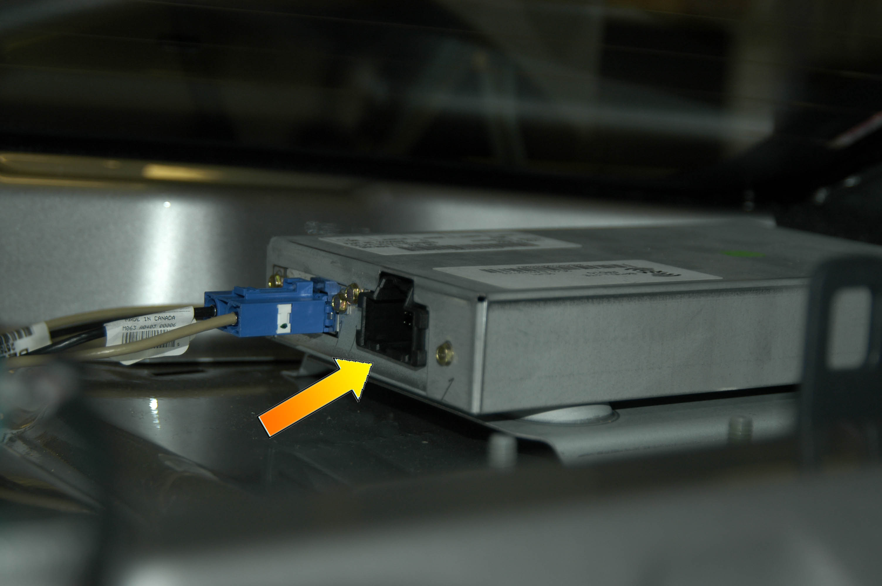 3. Disconnect the XM connector (the small black one). This connector feed power, class 2 serial data, and the audio to the head unit.