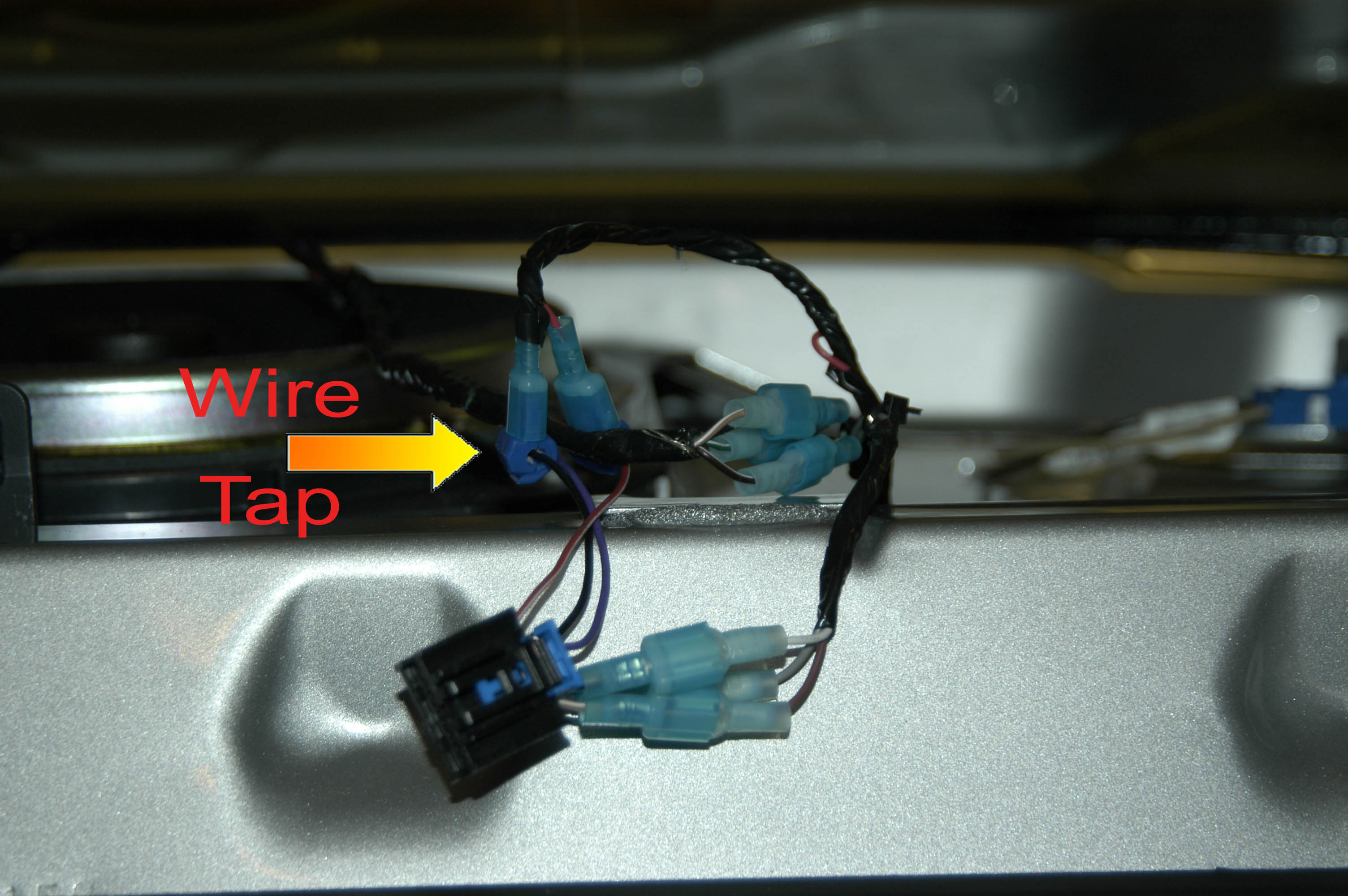 5. Using a wire tap, snap a tap on the Red/White and Black wire (Separatly of course) to power the PAC adapter.