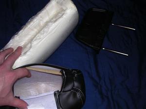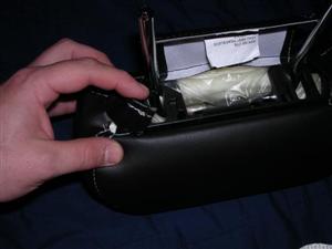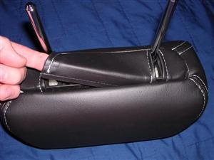 Step 2: insert finger into opening, pull upward on the center section of material.