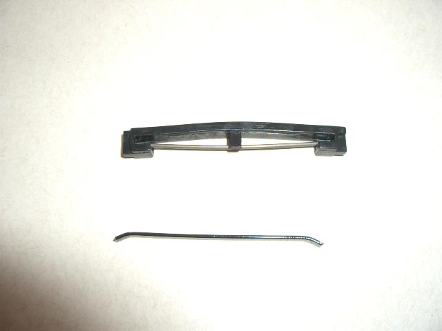 Cut a heavy bobby pin slightly shorter than the factory spring and put slight bends on each end of the cut bobby pin as shown.